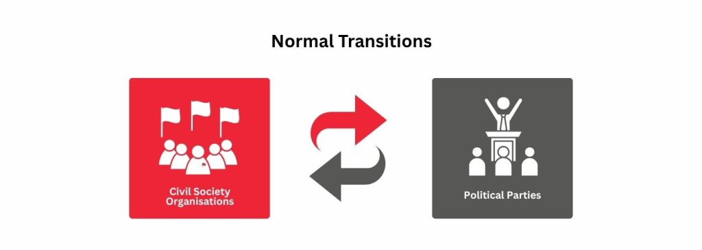 Interaction between civil society and political parties already occurs in practice. Civil society actors often enter party politics during periods of political change, such as elections, while politicians frequently transition into civil society roles after leaving public office.