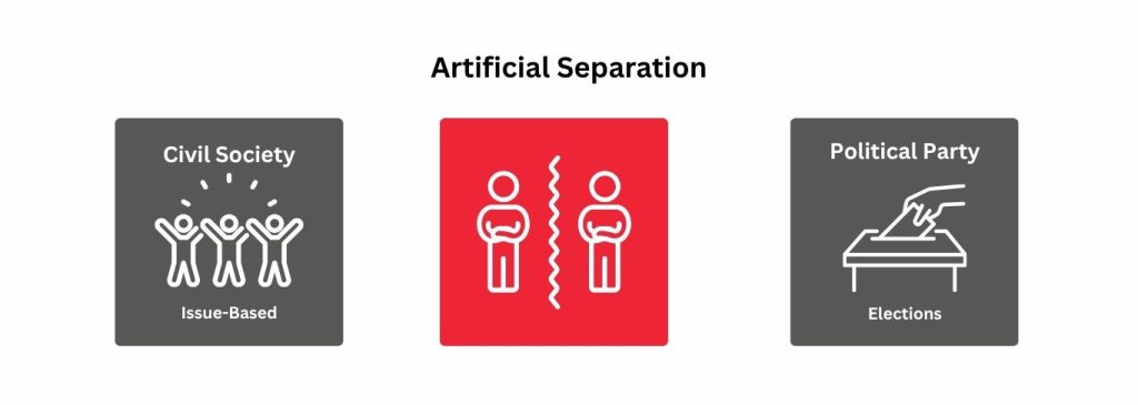 Efforts to bring civil society organisations and political parties together are frequently met with hesitation and discomfort from both sides. These internal reservations are often compounded by external pressures from actors who have little interest in seeing such alliances emerge. Recognising and overcoming these barriers is essential to normalising collaboration between the two sectors.